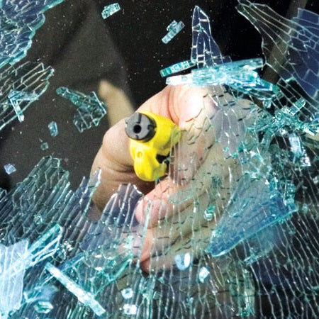 - Tempered glass window breaker: the solid, heavy-duty, stainless-steel spike easily breaks tempered glass car side windows. Hit preferably one of the corners of the window for better results. The resqme is equipped with a spring-loaded mechanism and resets after each use. The resqme is reusable multiple times.